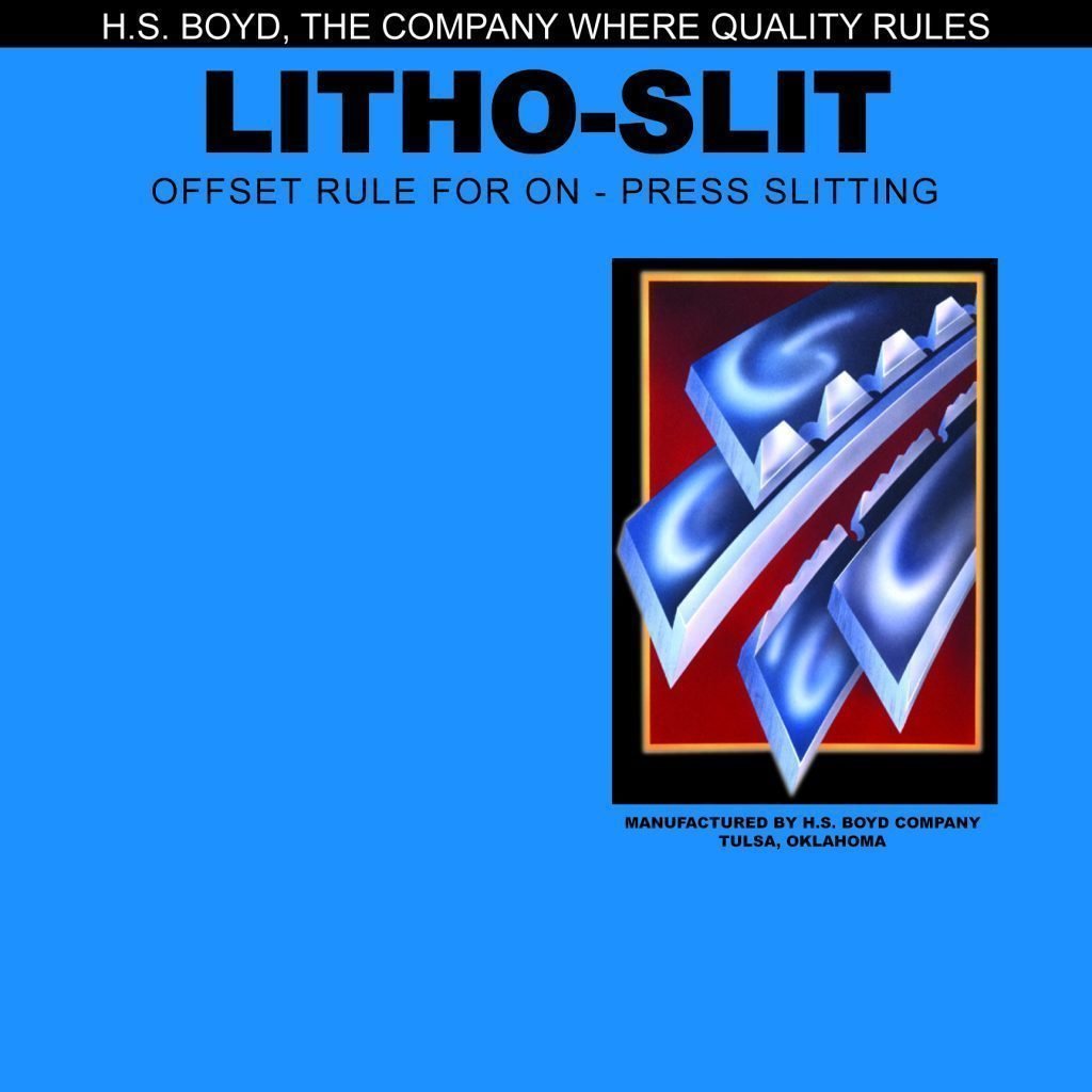 Permits on-press straight-cutting possibilities. Blade is effective for slitting, straight line die cutting and insertion slots in presentation folders can be used on either card or paper stocks.